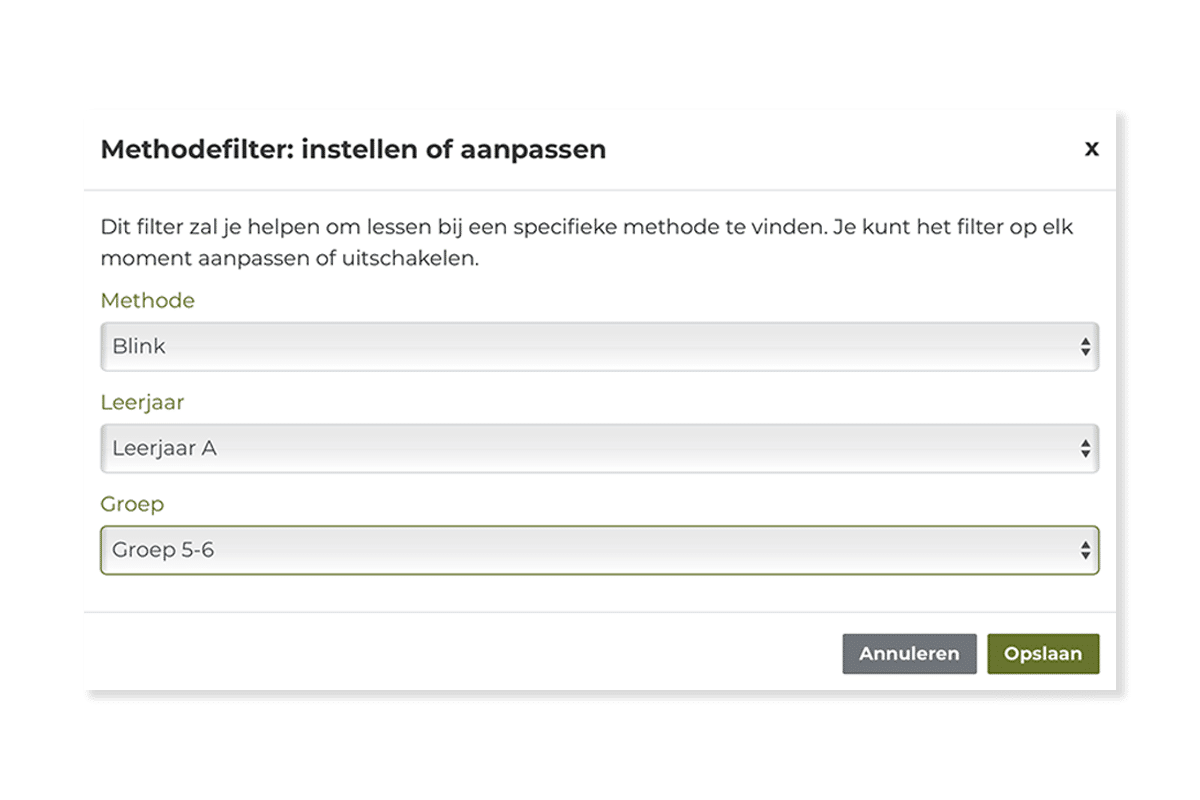 Werk je als school met een methode die nog geen onderdeel is van het filter, geef het aan ons door en wij breiden het filter voor je uit.